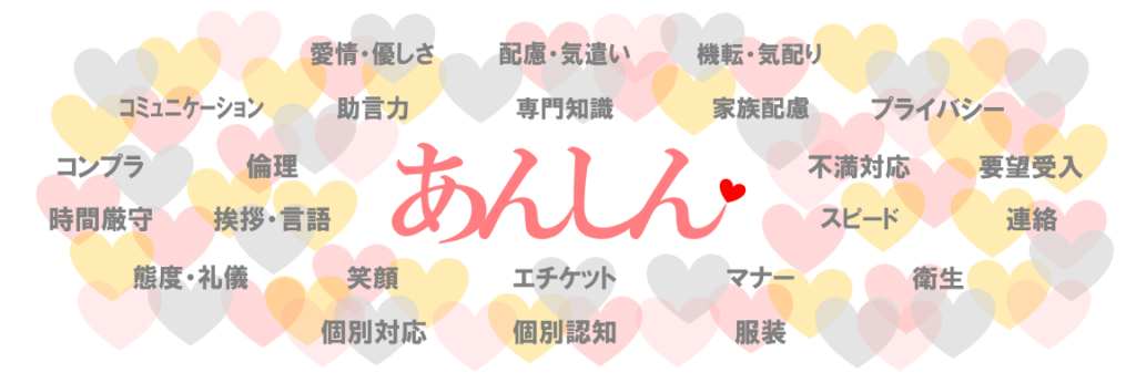 私達は、各地で挙げられている「課題」を私達自身の問題と受け止めて対応策を練り、各地で挙げられている「要望点」を私達自身が望まれている事と捉えて、日々のサポート活動を行う事こそ皆様の「安心・安全」に繋がると信じます。訪問介護のあらゆる場面で、最も重要な “あんしん” を追求します!